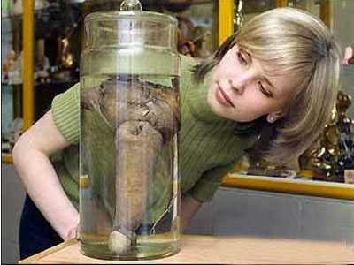 据说,这是该博物馆以前的某们负责人出高买一位传教士的生殖器官。这位传教士生前因为长有巨长生殖器让无数女子神魂颠倒。此以后,这件展示品成为该博物馆的一个较大亮点,许多参观者都争相目睹这件出奇的性器官,他们认为看看这样雄壮的生殖器官,将有助于增强自信心,提高自己生殖能力。
