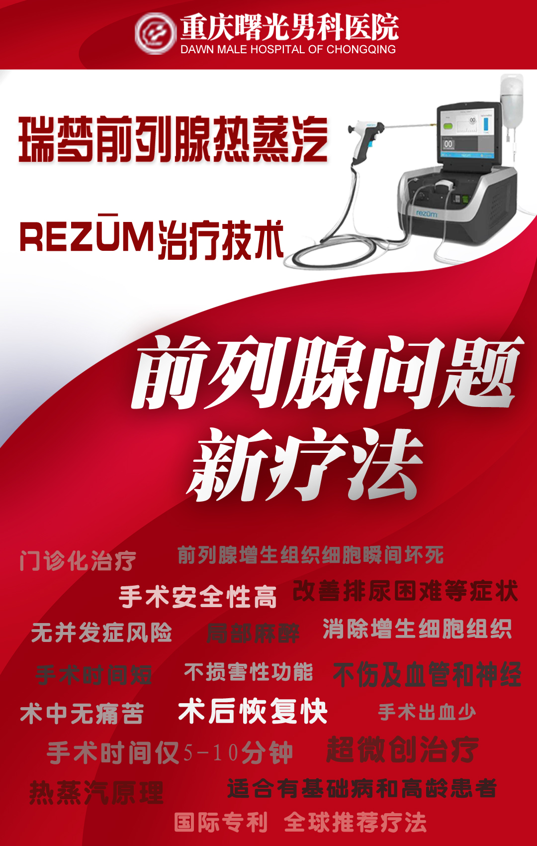 重庆曙光男科医院是重庆市一家开展该技术的医院,也是国内率先开展美国波士顿瑞梦前列腺热蒸汽消融技术的单位之一,标志着重庆地区在前列腺疾病治疗上迈入了超微创治疗时代。重庆曙光男科医院作为重庆地区的标杆,将为大量前列腺炎患者带来福音和希望!