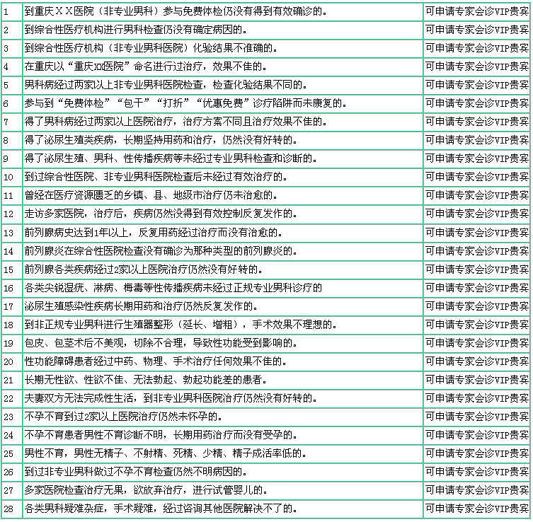 五一将至,为让更多男性患者有看医生的机会,重庆曙光男科医院除日常医生照常接诊外,还特别邀请了男科整形人文成浩博士,美国耶鲁大学医学院吴小蔚博士、台北医科大学附属医院李良明教授、中国位男科学博士后田龙教授等四大优良男科博士到医院进行会诊,他们将集美国、、中国台湾、北京等男科诊疗理念之精髓,解决各种男科疑难问题。即日起,以下几类男科疑难患者可通过重庆曙光男科医院电话023-86860999或QQ:800012200与医生进行提前预约。