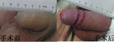 切口于阴茎根部,位置隐蔽,随着体毛生长自然将其覆盖。随着时间推移,越来越淡化。术后疗效明显。