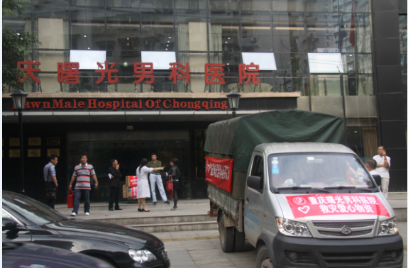 4.20雅安芦山县发生7级大地震后,重庆曙光男科医院践行大灾大难之前一个医院肩负的社会责任,在时间向地震灾区人民伸出援手。4月22日下午,在重庆市团委的组织下,重庆曙光男科医院捐助了批医疗物资,医院组织人员指导送往雅安芦山,并安排多医生护人员随时待命,准备赶赴灾区帮助受伤人员进行初步的外伤包扎、止血、固定等处理。